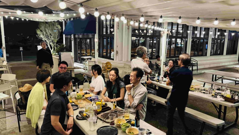 焼きたての料理の香ばしい匂いと、海に沈む夕日が重なり合い、自然と笑顔が広がるアットホームなひとときに。普段の交流会とはまた違うリラックスした雰囲気の中で、参加者同士の距離も一層近づいたように感じられます。